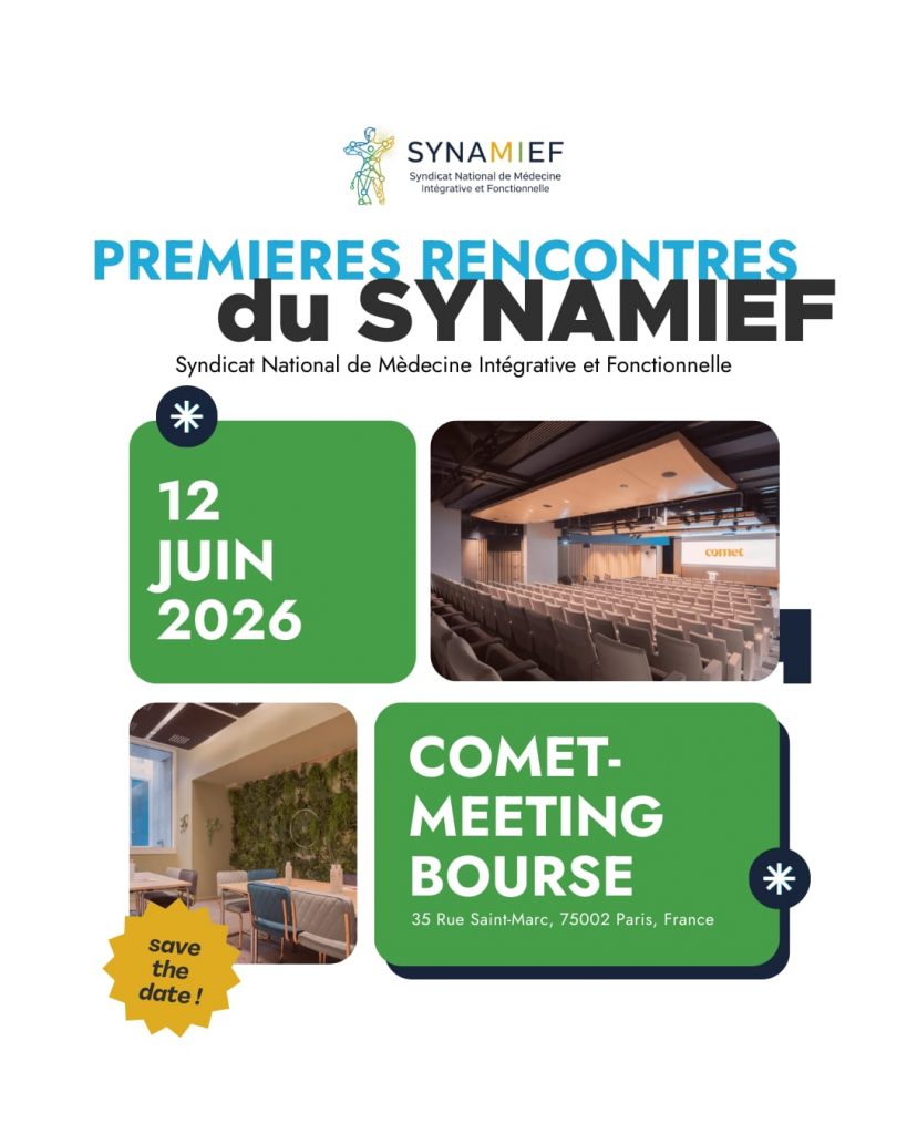 Le 12 juin 2026, le SYNAMIEF organise ses premières rencontres nationales au Comet-Meeting Bourse à Paris. Cet événement inédit réunira professionnels de santé, experts et acteurs engagés autour de la médecine intégrative et fonctionnelle, dans un cadre propice aux échanges, à la réflexion et à la construction de projets communs.